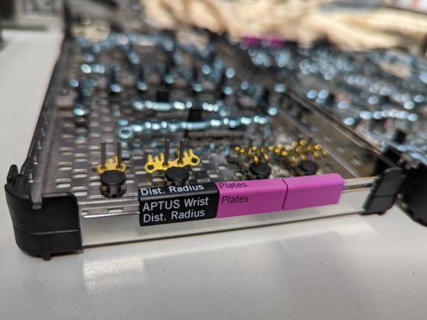 - All implants/screws provided in theatre caddies/trays per delegate from Medartis