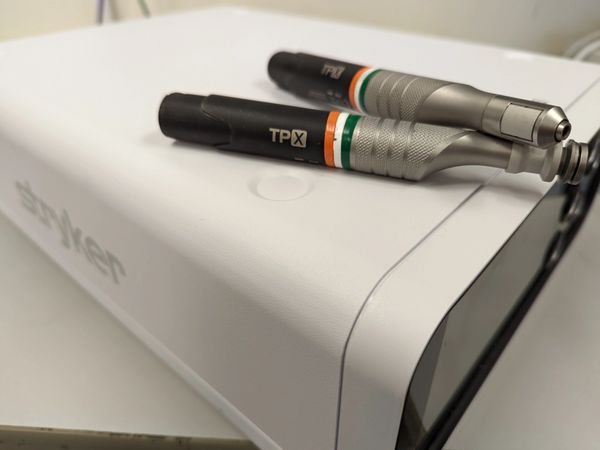 Theatre power tools including K-wire drivers, drills, burrs and sagittal saws are provided by Stryker.